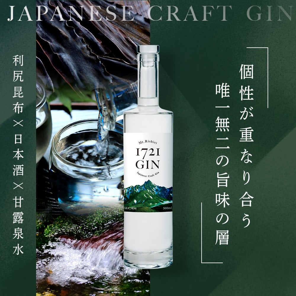 ボタニカルにはジュニパーベリー、レモンピール、オレンジピール、アンゼリカルート、オリスルート、カモミール、ハマナス、ミント(フレッシュ)神成誠の利尻昆布、ミヤマビャクシン、利尻ビャクシン、ニガヨモギ、トドマツ(利尻山)を使用。